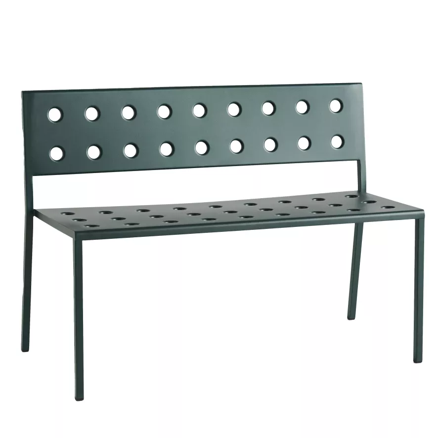 De Balcony eetbank met rugleuning van HAY heeft een breedte van 114 centimeter, een diepte van 52 centimeter en een hoogte van 79 centimeter. De eetbank heeft een zithoogte van 46 centimeter. Deze eetbank is gemaakt van staal en is met een primer en een speciale outdoor poedercoat afgewerkt. Deze maken de Balcony eetbank met rugleuning geschikt twee personen en voor binnen-en buitengebruik. De poten van deze eetbank zijn voorzien van zwarte, plastic vloerbeschermers. De Balcony eetbank met rugleuning van HAY is in verschillende kleuren en uitvoeringen verkrijgbaar.