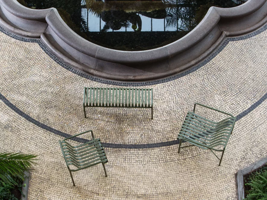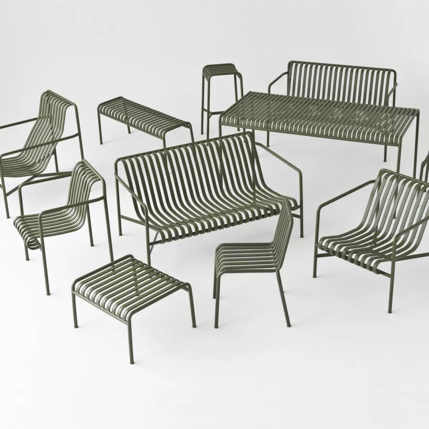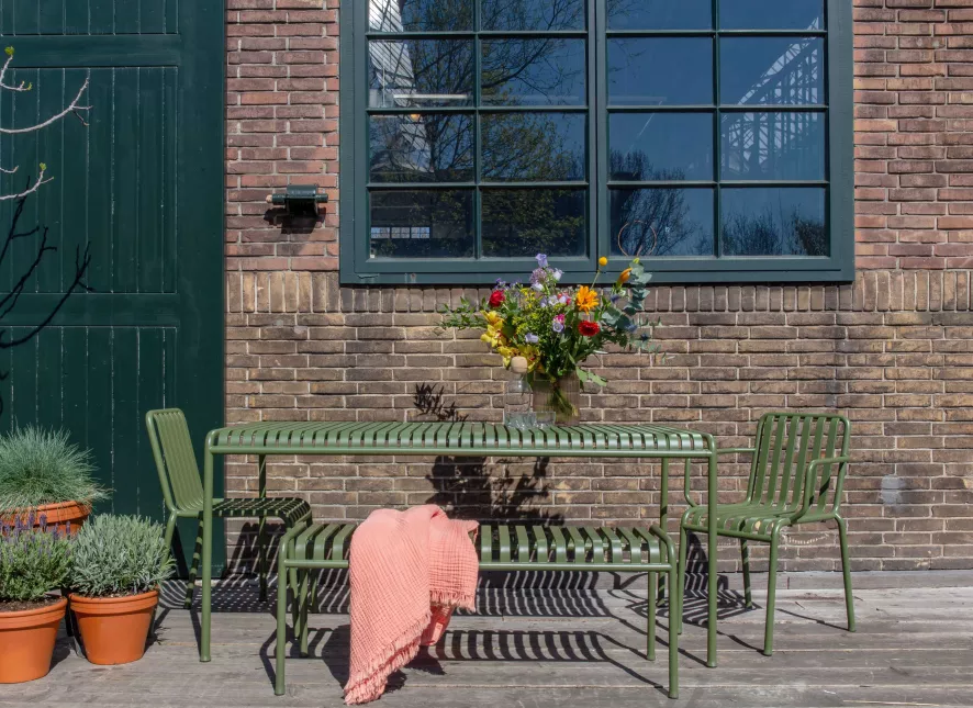 De Hay Palissade eetbank is ontworpen door Ronan & Erwan Bouroullec.