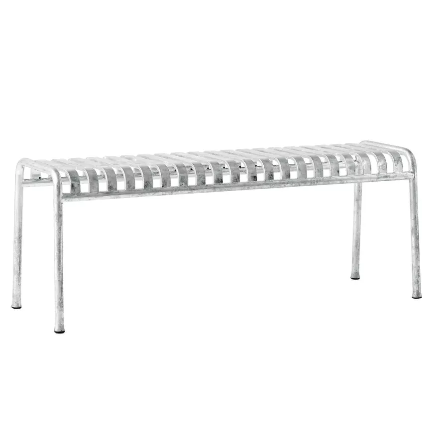 De Palissade eetbank van Hay is gemaakt van elektro-gegalvaniseerd staal met een poedercoat en verkrijgbaar in 4 varianten: gegalvaniseerd staal, olijfgroen, lichtgrijs en antraciet. De bank heeft een breedte van 120 centimeter, een diepte van 42 centimeter en een hoogte van 45 centimeter.