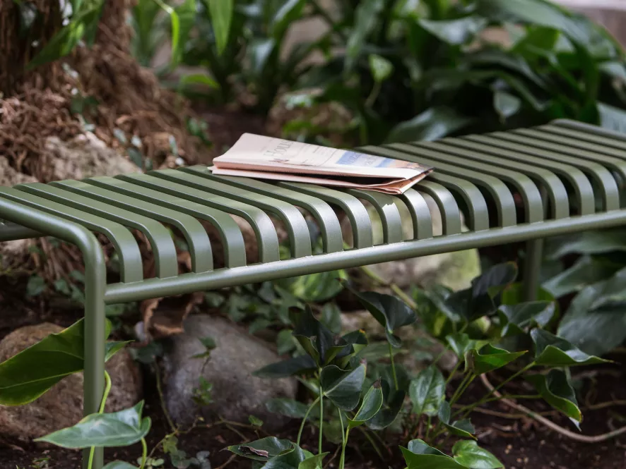 De Hay Palissade eetbank is ontworpen door Ronan & Erwan Bouroullec.