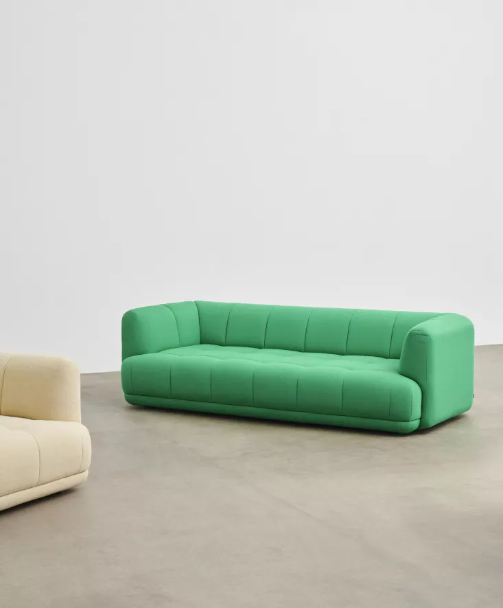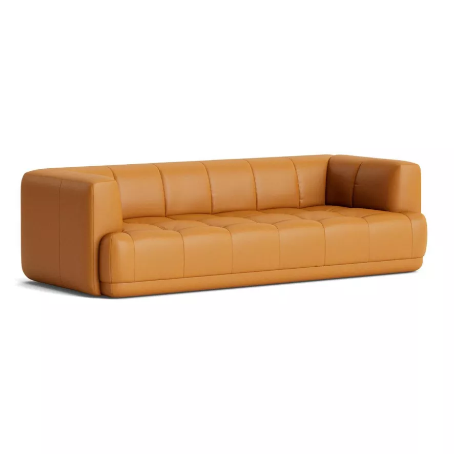 De Quilton 3-zits bank van HAY heeft een breedte van 248 centimeter, een diepte van 109 centimeter en een hoogte van 72 centimeter. De bank heeft een zithoogte van 41 centimeter en een zitdiepte van 77 centimeter. Deze 3-zits bank heeft een FSC-gecertificeerde, houten constructie met een springveer systeem en heeft een bodem van geweven stof. De poten van de bank zijn gemaakt van massief beukenhout en zijn voorzien van vilten vloerbeschermers. De bank is voorzien van hoogwaardig PU-schuim en is volledig bekleed met stof of leer. De Quilton 3-zits bank van HAY is in verschillende formaten en uitvoeringen verkrijgbaar.