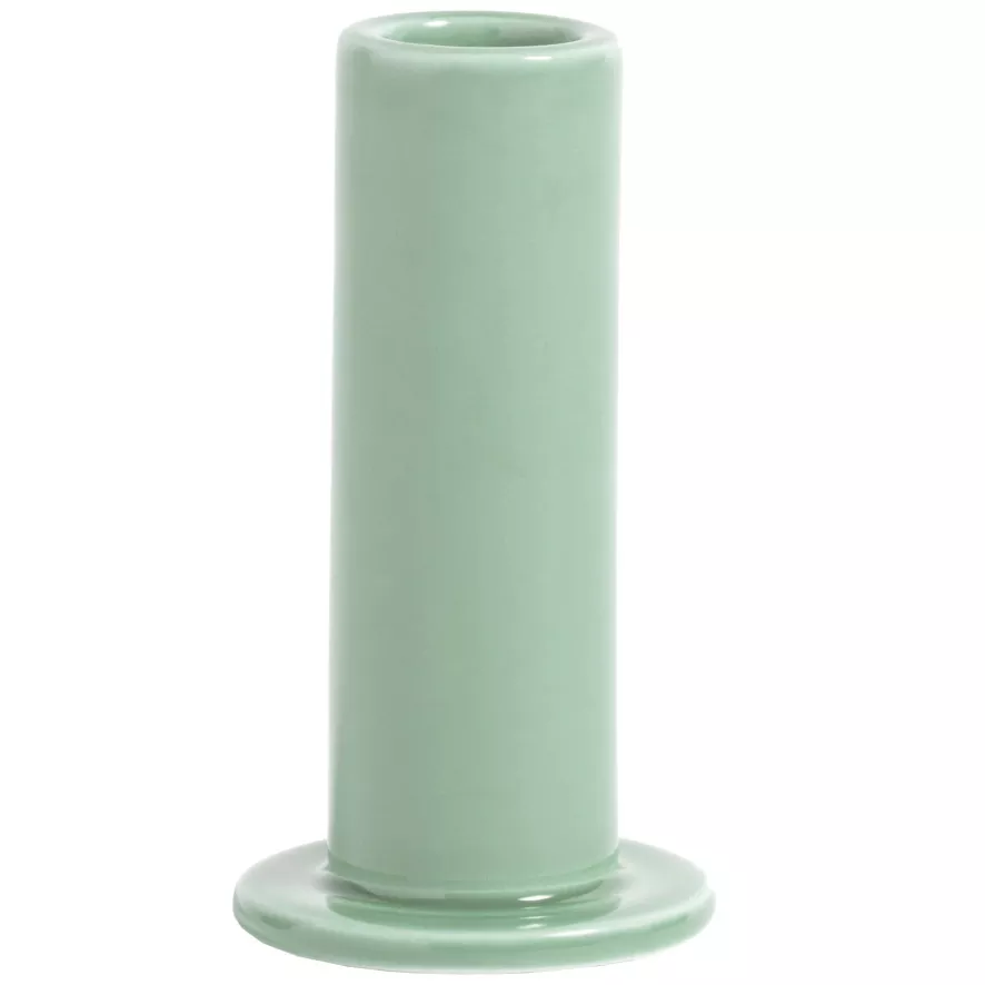 De HAY Tube kandelaar medium heeft een diameter van 5,5 centimeter en een hoogte van 10 centimeter. Deze kandelaar is gemaakt van aardewerk en is afgewerkt met een semi-transparant glazuur. De Tube kandelaar medium van HAY is in verschillende formaten en kleuren verkrijgbaar.