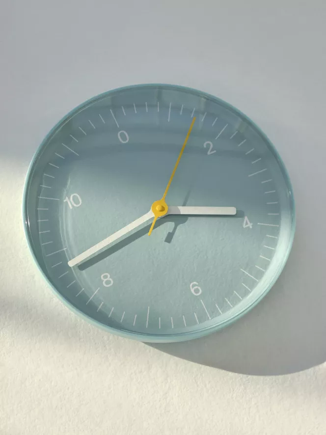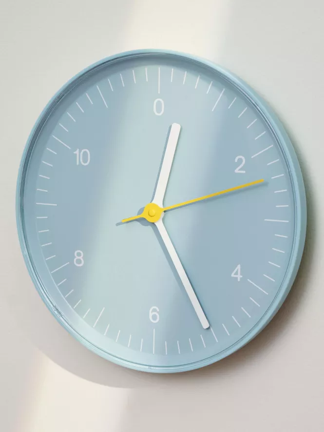 De Wall Clock klok van HAY is in verschillende kleuren verkrijgbaar.